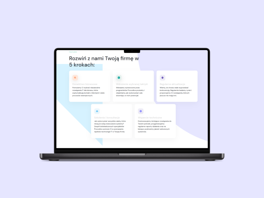 Stworzona przez nas strona wizytówka dla Procodice stała się kluczowym narzędziem w budowaniu relacji z klientami i prezentacji kompetencji firmy. Oto główne funkcjonalności: