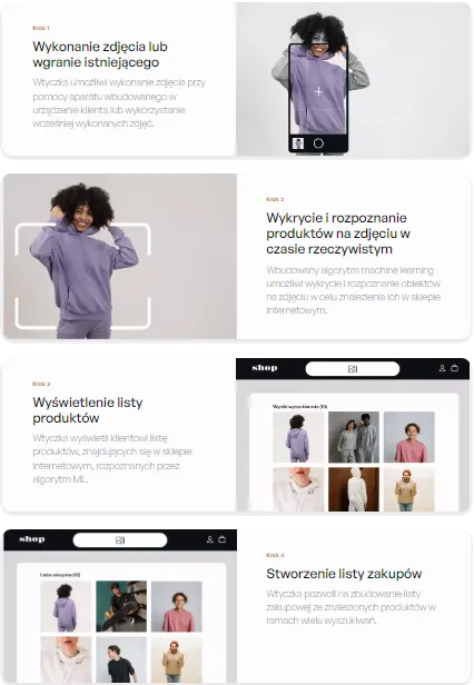 i wskazanie stron produktowych rozpoznanych produktów w oparciu o zaawansowane algorytmy sztucznej inteligencji i mechanizmy uczenia maszynowego.